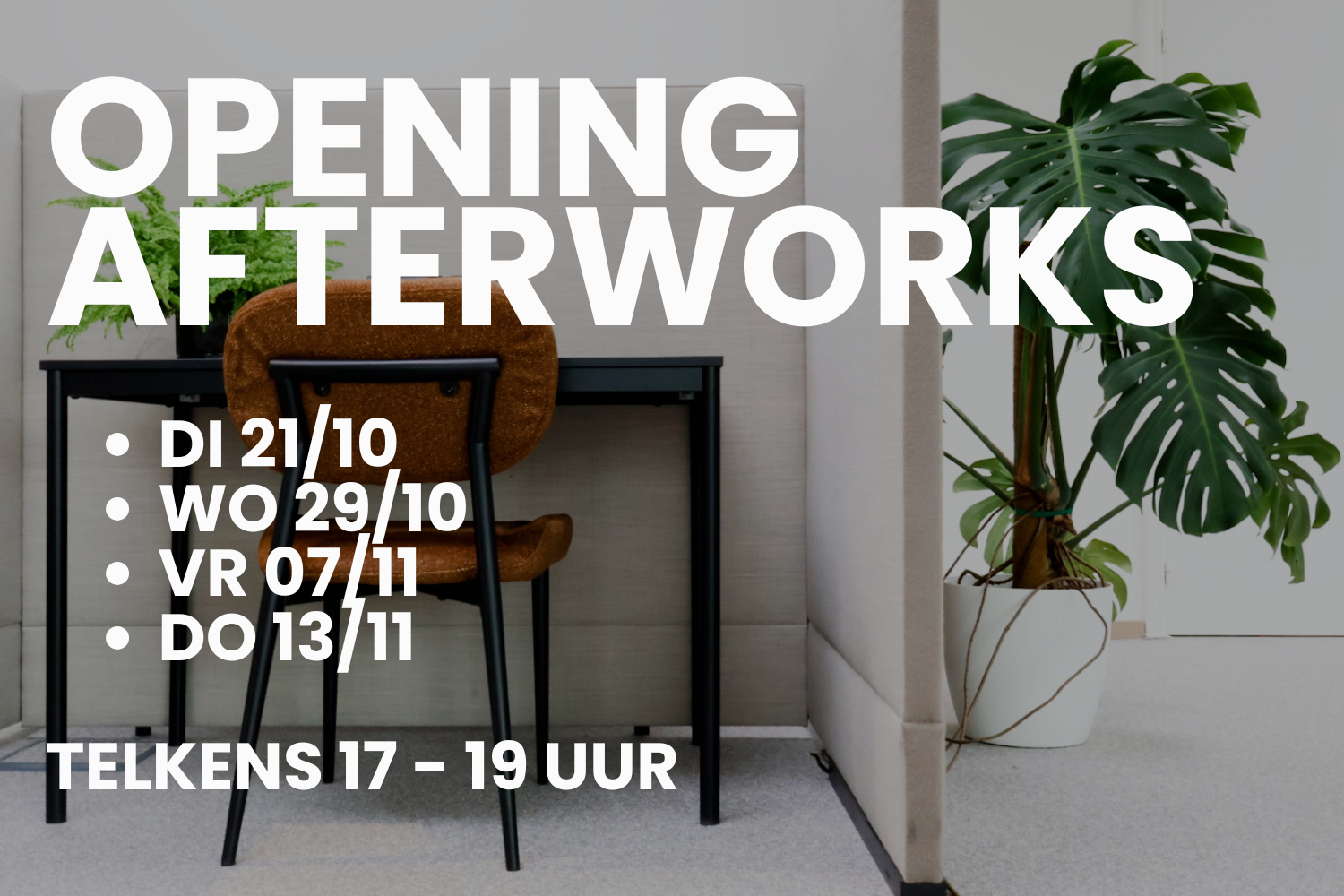 Kom KNOOPPUNT co-working de komende weken ontdekken op één van de gezellige afterworks. Kom en vertrek wanneer je wil! Graag wel even je komst registreren. Tot dan?